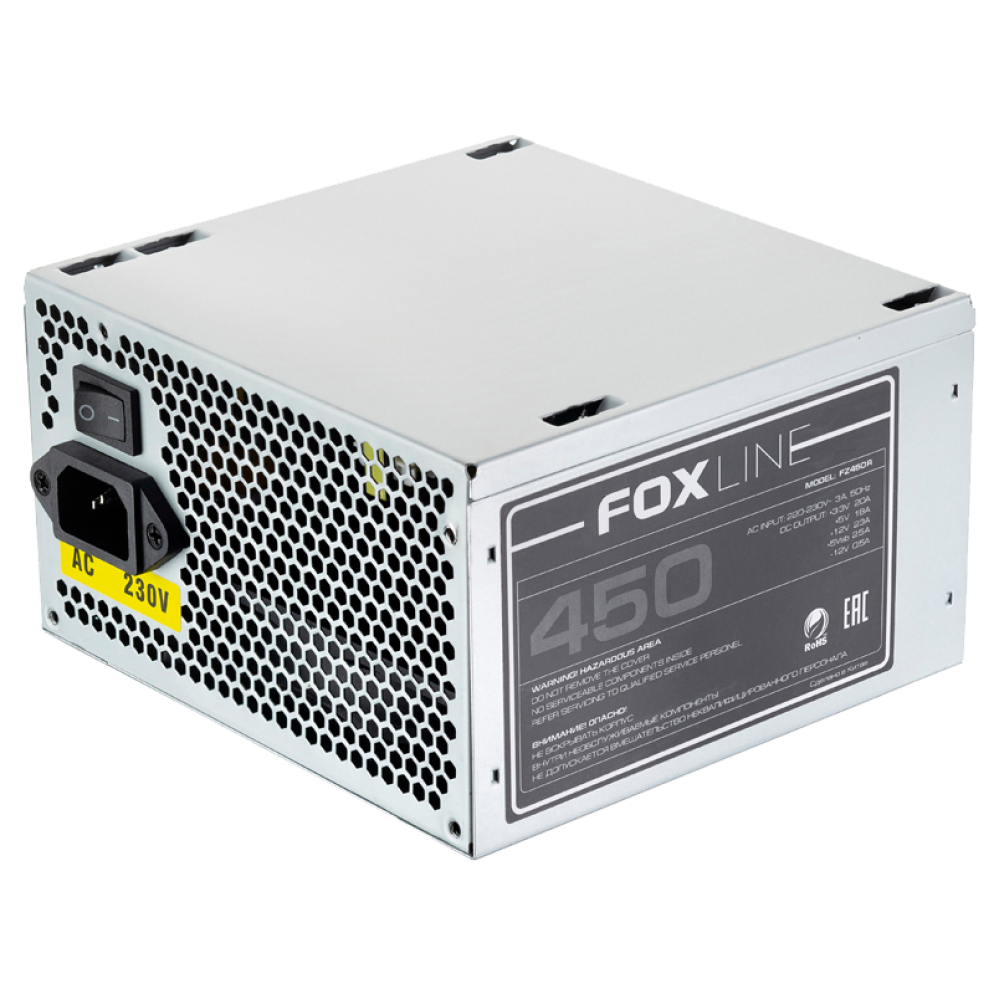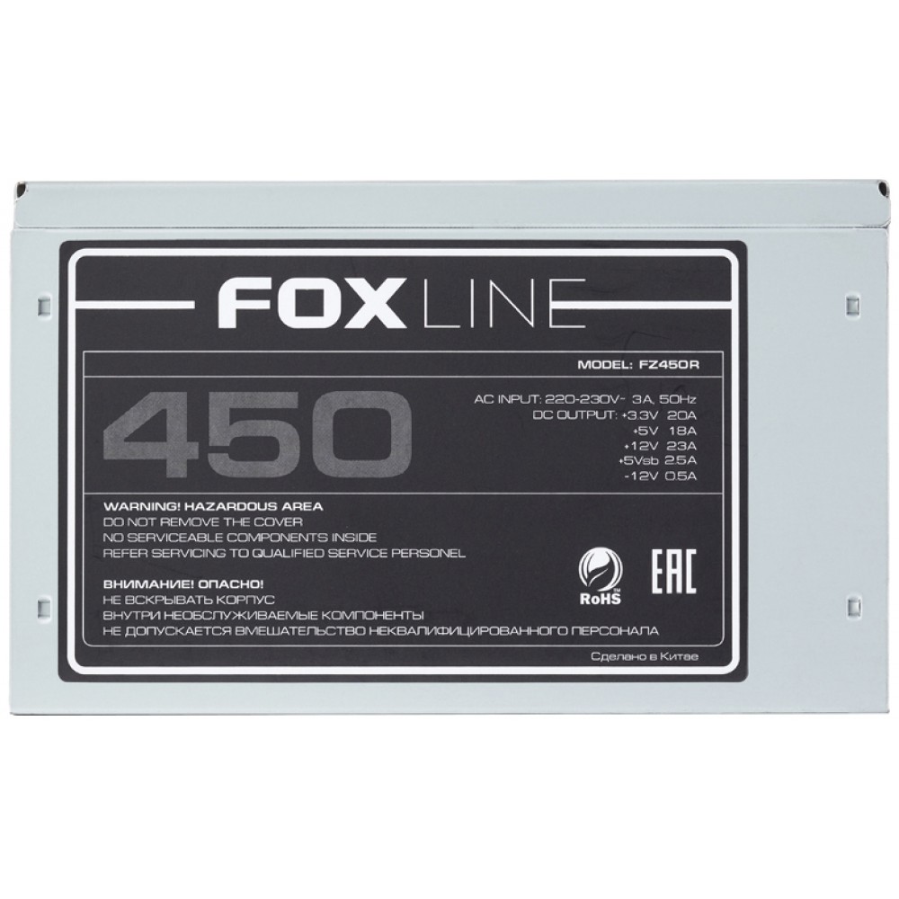 Блок питания 450Вт/ Power Supply Foxline, 450W, ATX, NOPFC, 120FAN, 2xSATA, 2xPATA, 1xFDD, 24+4 Foxline