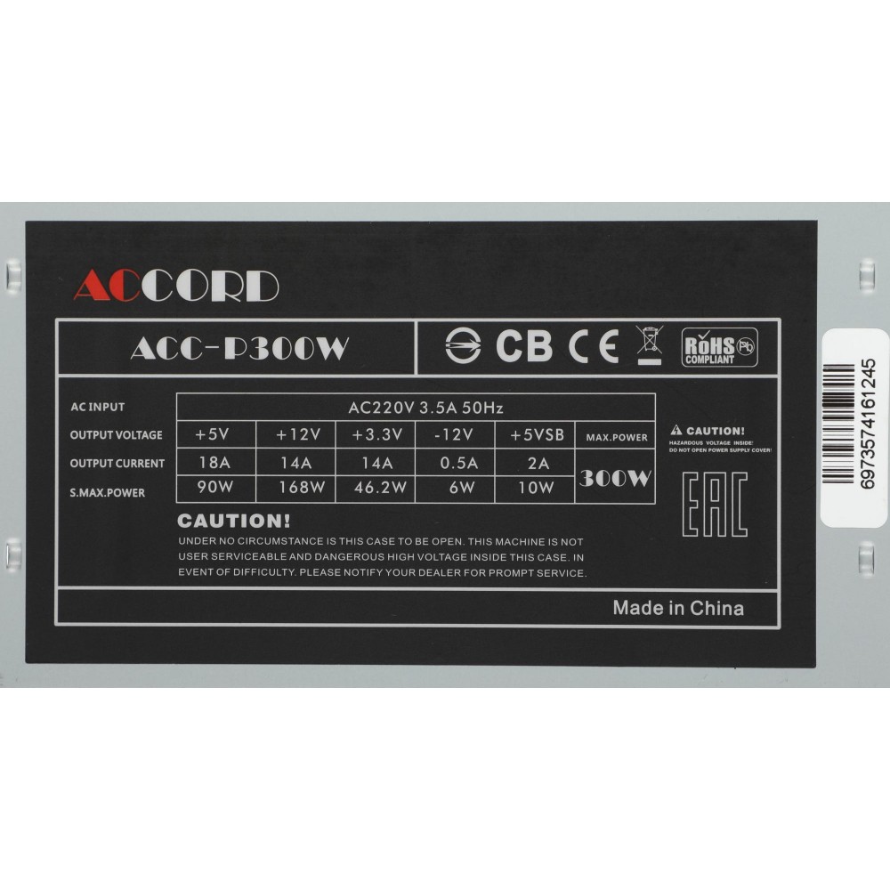 Технические характеристики Блок питания Accord ATX 300W ACC-P300W (20+4pin) 80mm fan 3xSATA Accord