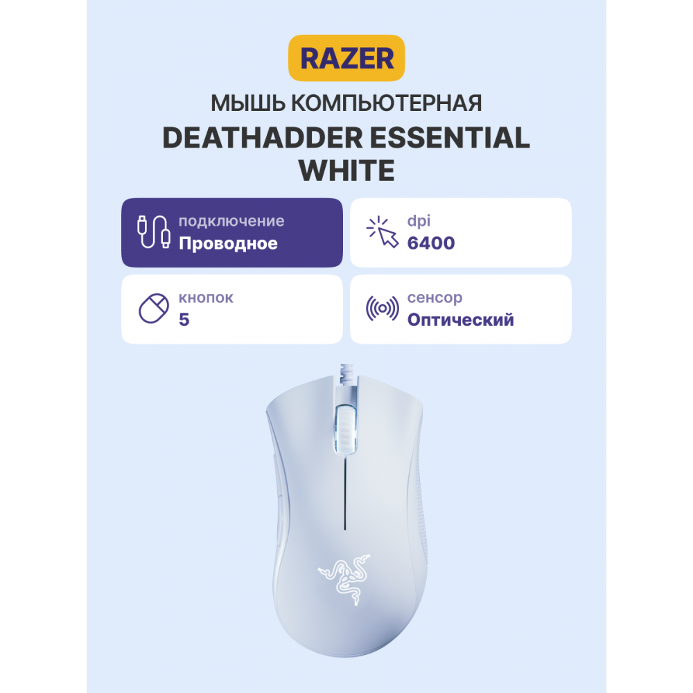 Уже более десяти лет серия Razer DeathAdder является основной на мировой киберспортивной арене. Она завоевала репутацию надежности, которой доверяют геймеры, благодаря своей проверенной долговечности и эргономике. Теперь мы сделали её еще более доступной, встречайте новинку — Razer DeathAdder Essential.