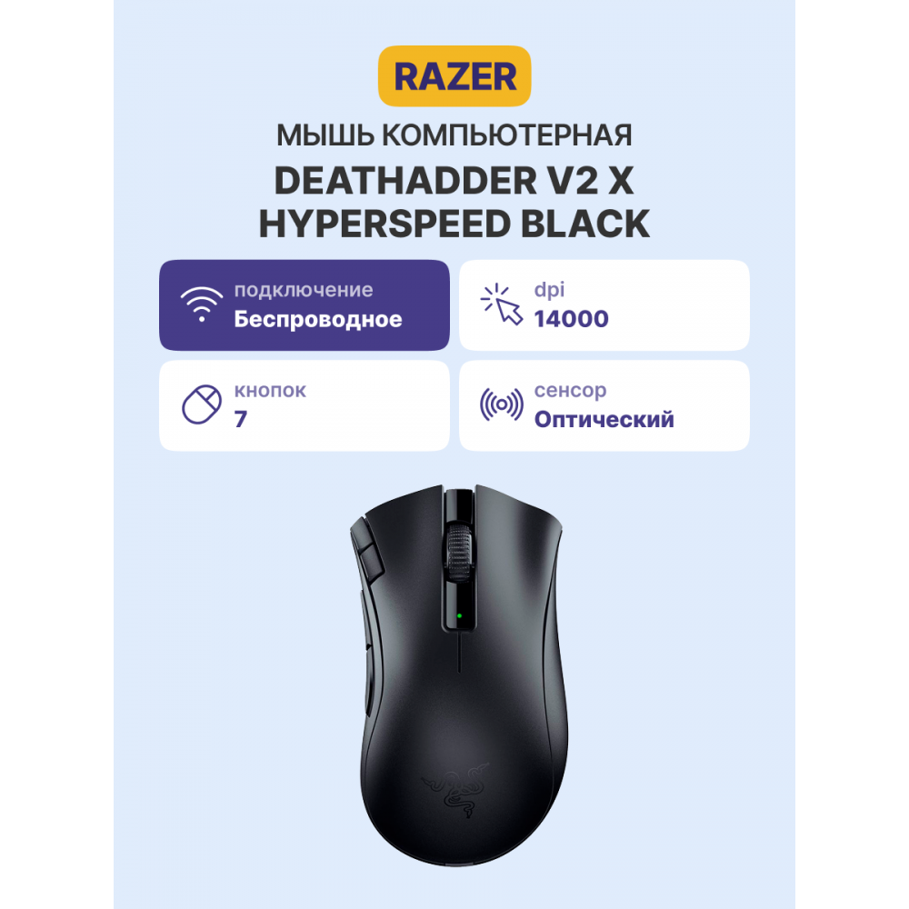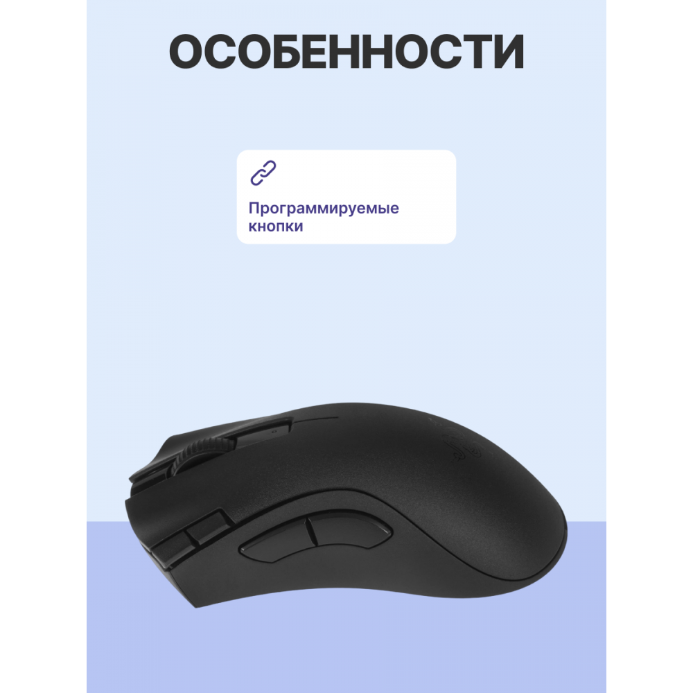 Продано более 13 миллионов DeathAdder. Десятилетие наград в послужном списке. Икона эргономики теперь может похвастаться бесконечными возможностями управления благодаря двум вариантам беспроводного подключения: сверхбыстрая связь Razer™ HyperSpeed Wireless или Bluetooth. Кроме того, она оснащена семью программируемыми кнопками, в числе которых две новые кнопки быстрого доступа на кромке слева.