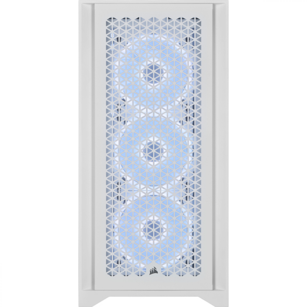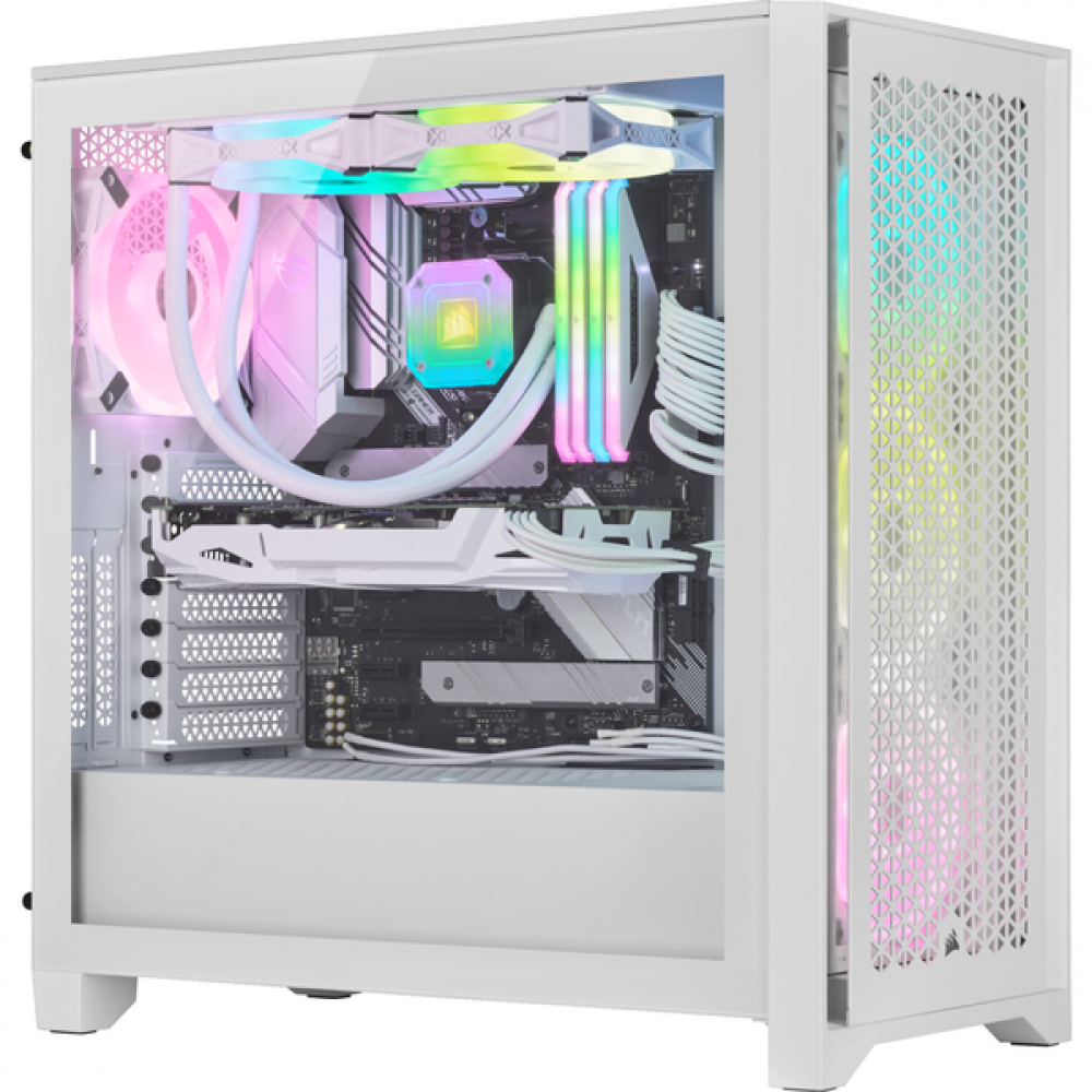 Корпус оснащен тремя 120-мм вентиляторами Corsair AF120 RGB ELITE, которые обеспечивают эффективное охлаждение всех компонентов системы. Вентиляторы установлены таким образом, чтобы создавать оптимальный поток воздуха, что помогает поддерживать стабильную температуру даже при высоких нагрузках. Дополнительно можно установить еще несколько вентиляторов или систему жидкостного охлаждения для улучшения теплоотвода. Оптимизированная передняя панель обеспечивает максимальный приток воздуха, что способствует эффективному охлаждению.
