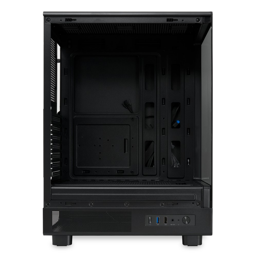 • Стильный дизайн: Корпус отличается современным дизайном с панорамной боковой панелью из закаленного стекла для демонстрации внутренних компонентов.