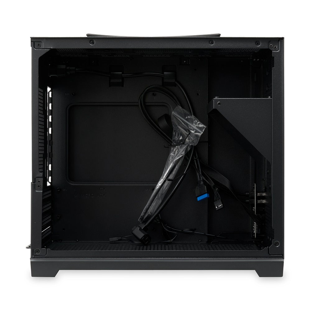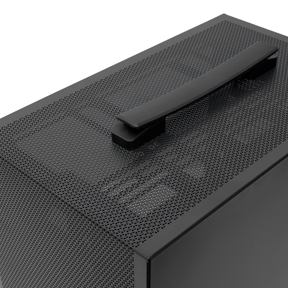 Корпус оснащён сетчатой передней панелью, что способствует эффективному воздухообмену. Хотя вентиляторы не входят в базовую комплектацию, предусмотрена возможность их установки для оптимальной системы охлаждения.