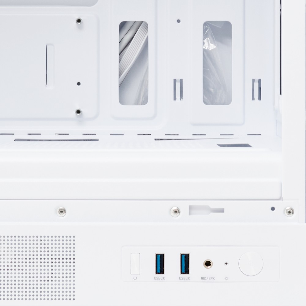 • Стильный дизайн: Корпус отличается современным дизайном с панорамной боковой панелью из закаленного стекла для демонстрации внутренних компонентов и сетчатой передней панелью для улучшенной вентиляции.