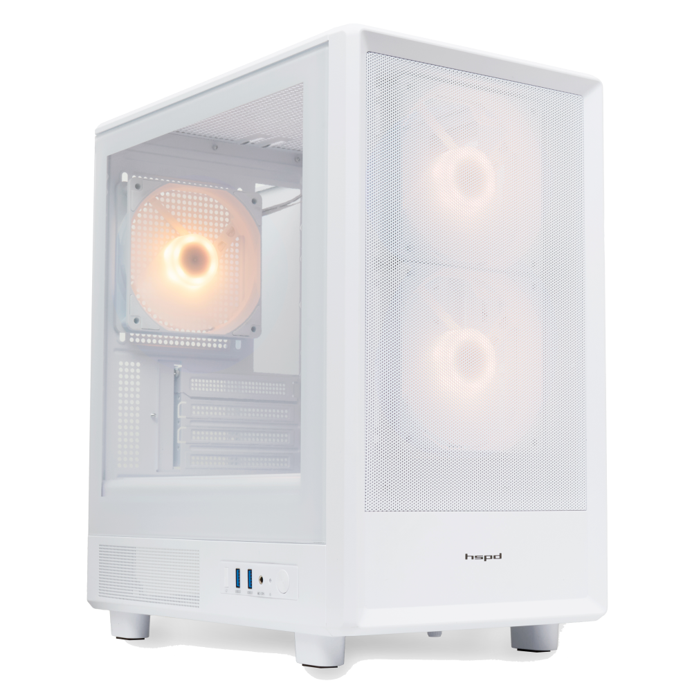 HSPD M310 - это компактный и стильный корпус для компьютера в формате Mini-Tower, отличающийся сетчатой передней панелью для лучшего охлаждения и панорамной боковой панелью из закаленного стекла. Он прекрасно подойдет для сборки как игровой системой, так и рабочей станции с небольшими размерами.