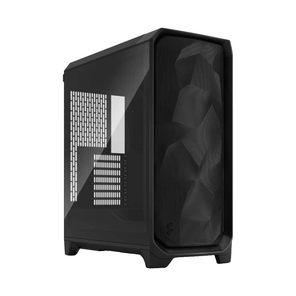 Сочетание черной основы и боковых панелей из закалённого стекла с лёгким тонированием — вот первое впечатление от корпуса Meshify 3. Конструкция сочетает металл и стекло, формируя элегантный образ, который прекрасно впишется в любое окружение. Предустановленные металлические решётки обеспечивают отличную циркуляцию воздуха, способствующую качественному охлаждению всех компонентов ПК. Прозрачная боковая панель подчёркивает технологичный характер системы, позволяя демонстрировать внутренние компоненты, такие как материнские платы, видеокарты и осветительные модули, усиливая общее восприятие сборки.