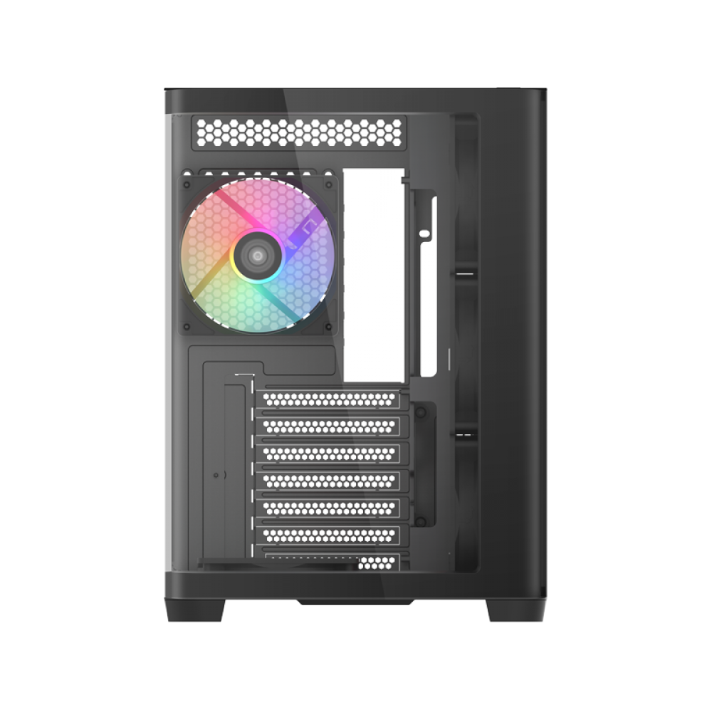 V60 поставляется с предустановленными семью вентиляторами PWM ARGB: три расположены спереди и сбоку, и один сзади. Эта установка обеспечивает мгновенное охлаждение, добавляя динамические, яркие световые эффекты для улучшения визуальной привлекательности вашей сборки.