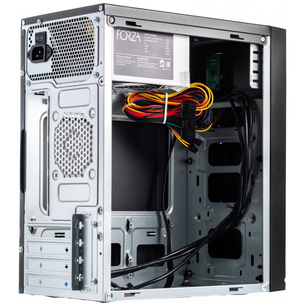 Корпус с блоком питания 450Вт./ Case Forza mATX, 450W, 2xUSB3.0, Black, w/o FAN, 12 cm fan PSU, power cord Foxline