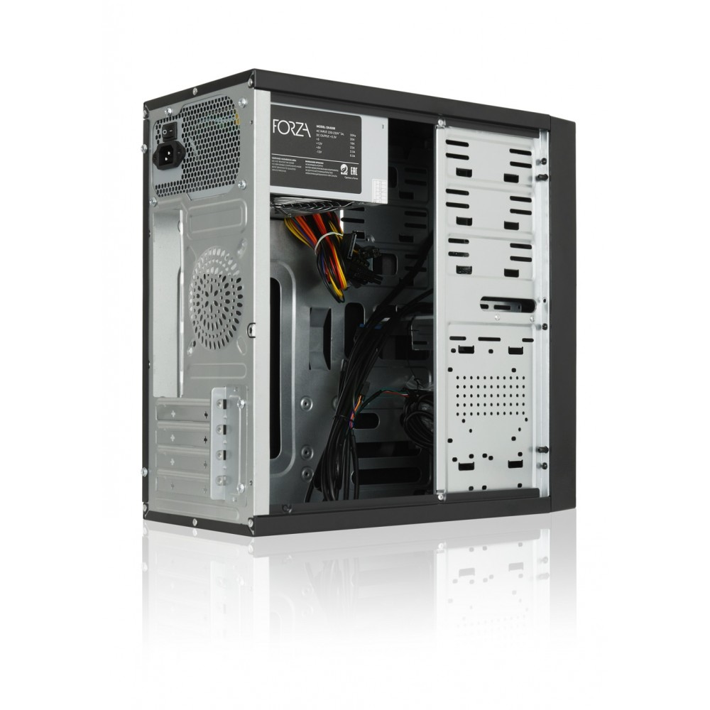Корпус с блоком питания 450Вт./ Case Forza mATX case, black, w/PSU 450W 12cm, w/2xUSB2.0, w/2xUSB3.0, w/1xType-C (USB2.0), w/pwr cord, w/o FAN Foxline