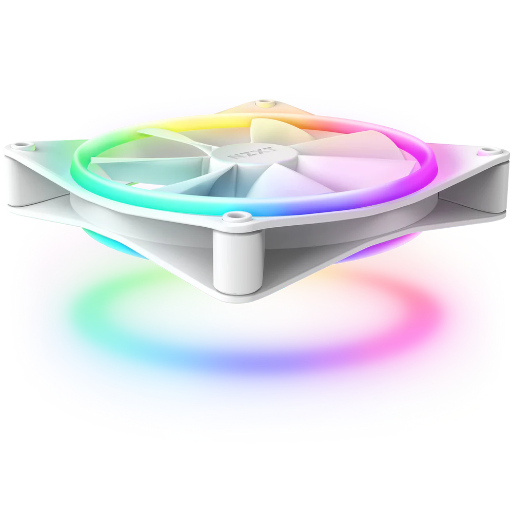 Главная особенность модели — двойная зона ARGB-подсветки: светодиоды расположены с обеих сторон вентилятора, создавая насыщенное свечение независимо от способа установки. Управление эффектами возможно через ПО NZXT CAM (при наличии совместимого контроллера).