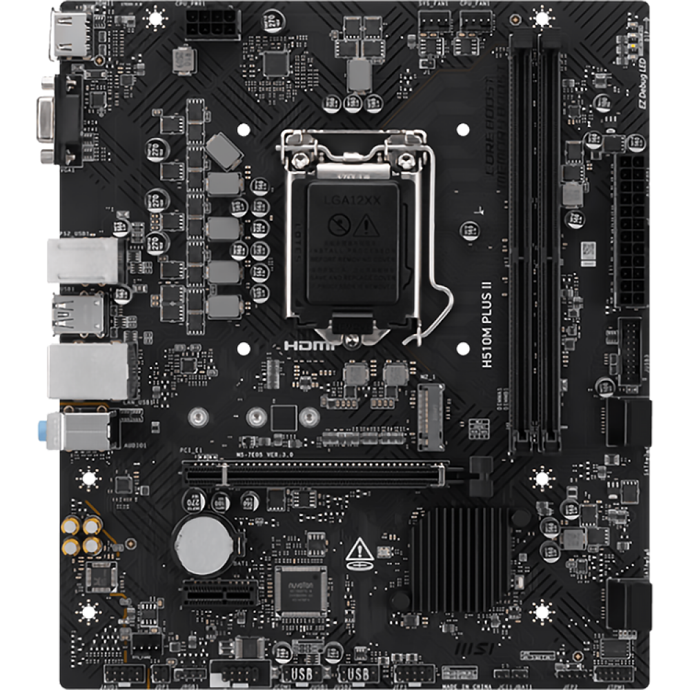 MSI H510M PLUS II станет отличным выбором для создания домашнего компьютера или рабочей станции. Компактные размеры в сочетании с широкими возможностями делают её универсальным решением для различных задач.