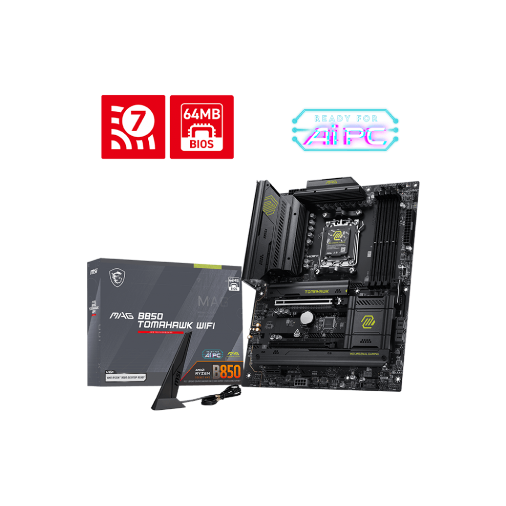 MSI MAG B850 TOMAHAWK WIFI — идеальное решение для тех, кто хочет создать мощный компьютер, способный справляться с любыми задачами, будь то игры, работа с графикой или обработка больших объемов данных. Эта материнская плата сочетает в себе высокую производительность, широкие возможности расширения и удобную сборку, делая её идеальным выбором для энтузиастов и профессионалов