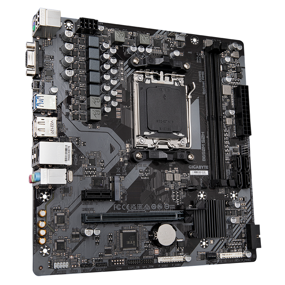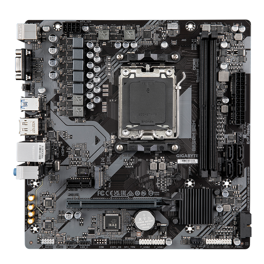 Технические характеристики Материнская плата/ MB GIGABYTE AMD B650 sAM5, 2xDDR5(96GB), D-SUB/HDMI 2.1/DP, 1xPCIe 4.0x16, 1xPCIe 3.0, 1xLAN, 4xSATA 6Gb/s, 1xM.2, 2xUSB 3.2, 4xUSB 2.0, 1xPS/2, mATX Gigabyte