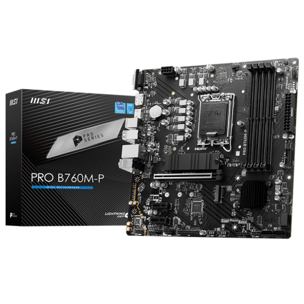 MSI PRO B760M-P выполнена в формате mATX, что облегчает установку и подходит для компактных корпусов и систем сборки. MSI PRO B760M-P — это баланс между ценой, функциональностью и надежностью, идеально подходящий для домашних и рабочих компьютеров.