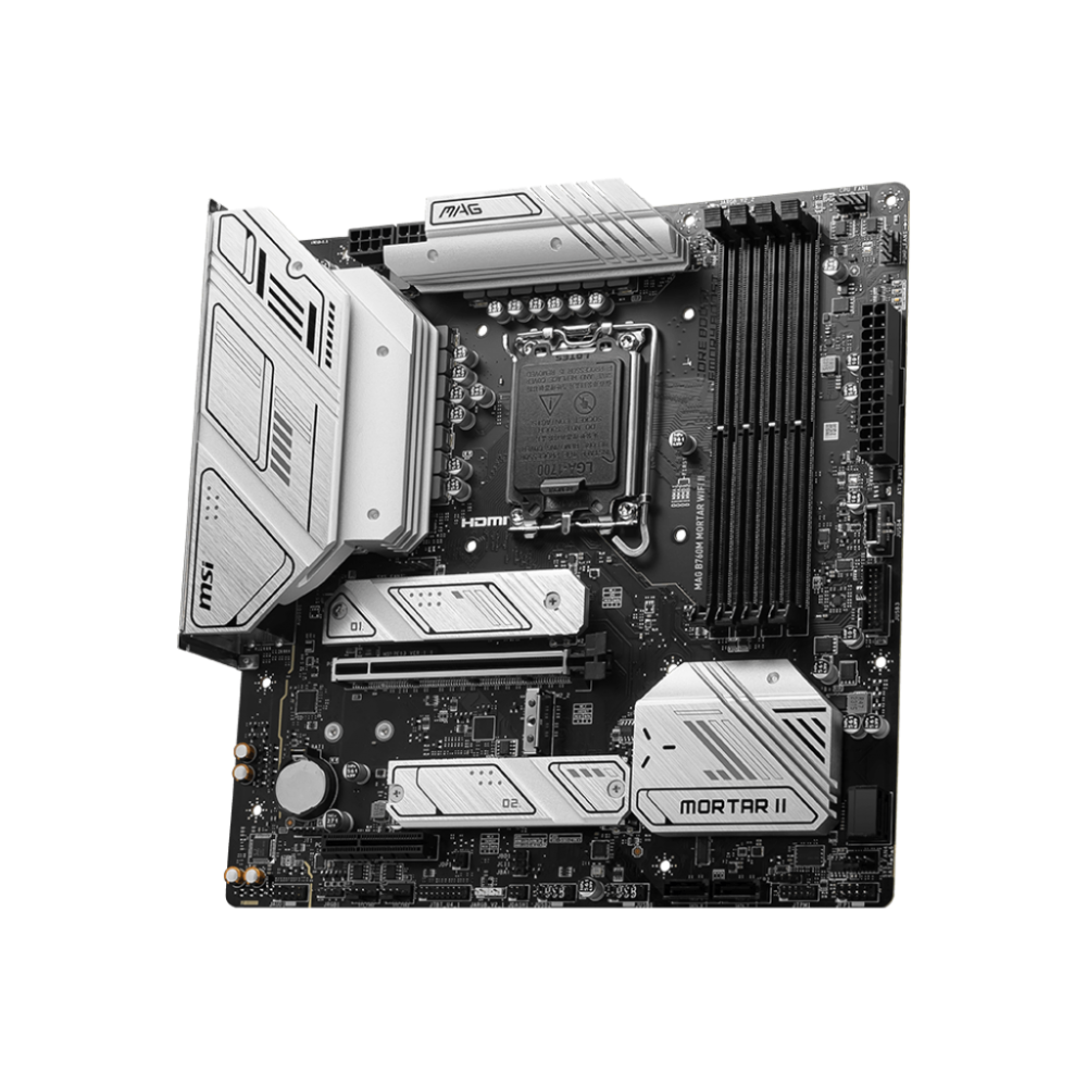Технические характеристики Материнская плата/ MB MSI INTEL B760 s1700, 4xDDR5(256GB), HDMI 2.1/DP, 1xPCIe 5.0x16, 1xPCIe 3.0x4, 1xLAN (2.5GbE), Wi-Fi, BT, 4xSATA 6Gb/s, 3xM.2, 1xUSB-C, 3xUSB 3.2, 4xUSB 2.0, mATX MSI