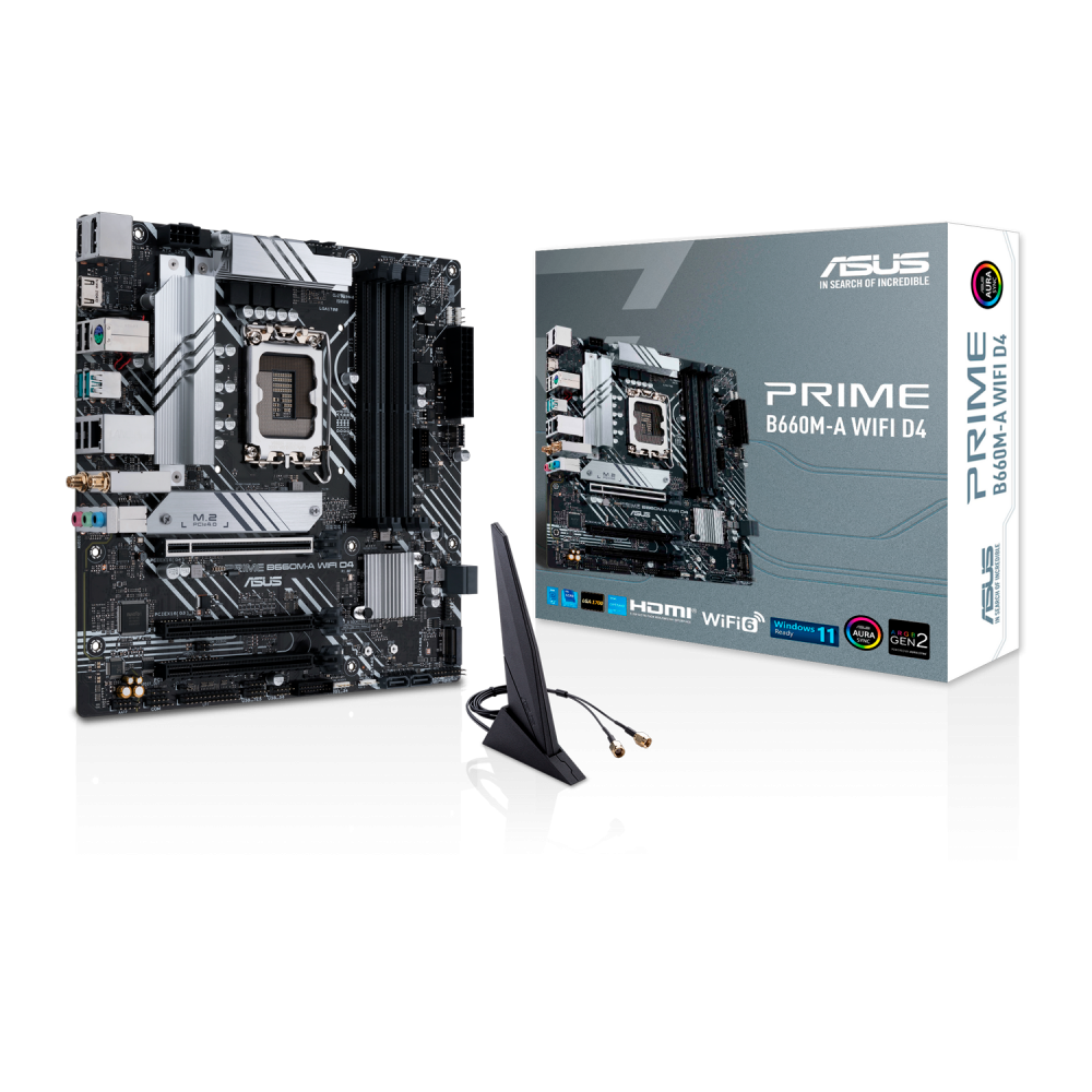 Материнские платы ASUS серии Prime созданы специально для того, чтобы раскрыть весь потенциал процессоров Intel 13-го и 12-го поколений. Обладая надежной конструкцией питания, комплексными решениями для охлаждения и интеллектуальными возможностями настройки, Prime B660 предоставляет пользователям и сборщикам ПК ряд вариантов настройки производительности с помощью интуитивно понятных функций программного обеспечения и встроенного ПО. ASUS PRIME B660M-A WIFI D4 предлагает элегантный футуристический корпус с черно-белой отделкой, элементами дизайна, вдохновленными космическим кораблем, металлической табличкой с названием и крышкой печатной платы.
