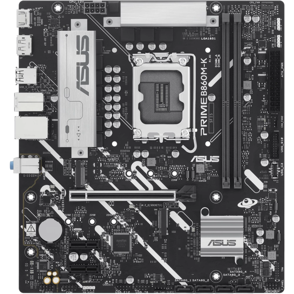 Материнская плата PRIME B860M-K оснащена несколькими встроенными радиаторами и набором гибридных разъемов для вентиляторов, что гарантирует охлаждение и стабильность работы вашей системы даже при интенсивных рабочих нагрузках.