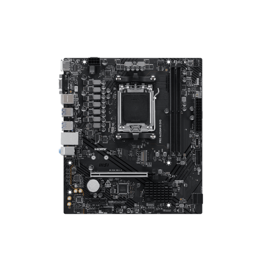 Материнская плата PRO A620AM-B EVO представляет собой современную и надежную основу для производительной системы. Она построена на базе чипсета AMD A620 и предназначена для работы с новейшими процессорами AMD Ryzen 9000, 8000 и 7000 серий, поддерживая передовую память стандарта DDR5. Эта модель разработана с акцентом на стабильность, долговечность и качество работы всех компонентов.