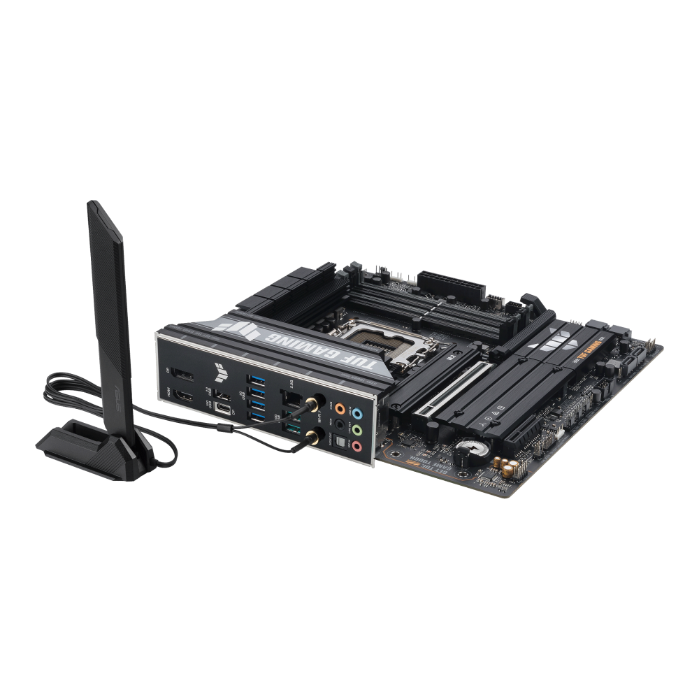 ASUS TUF GAMING B860M-PLUS WIFI также предлагает передовые сетевые возможности. Порт 2.5Gb Ethernet обеспечивает высокоскоростное проводное подключение, что особенно важно для онлайн-игр и потоковой передачи данных. Это гарантирует стабильное соединение и минимальные задержки, что критично для геймеров. Встроенный модуль Wi-Fi 6 обеспечивает стабильное и быстрое беспроводное соединение, позволяя пользователям подключать различные устройства без лишних проводов/