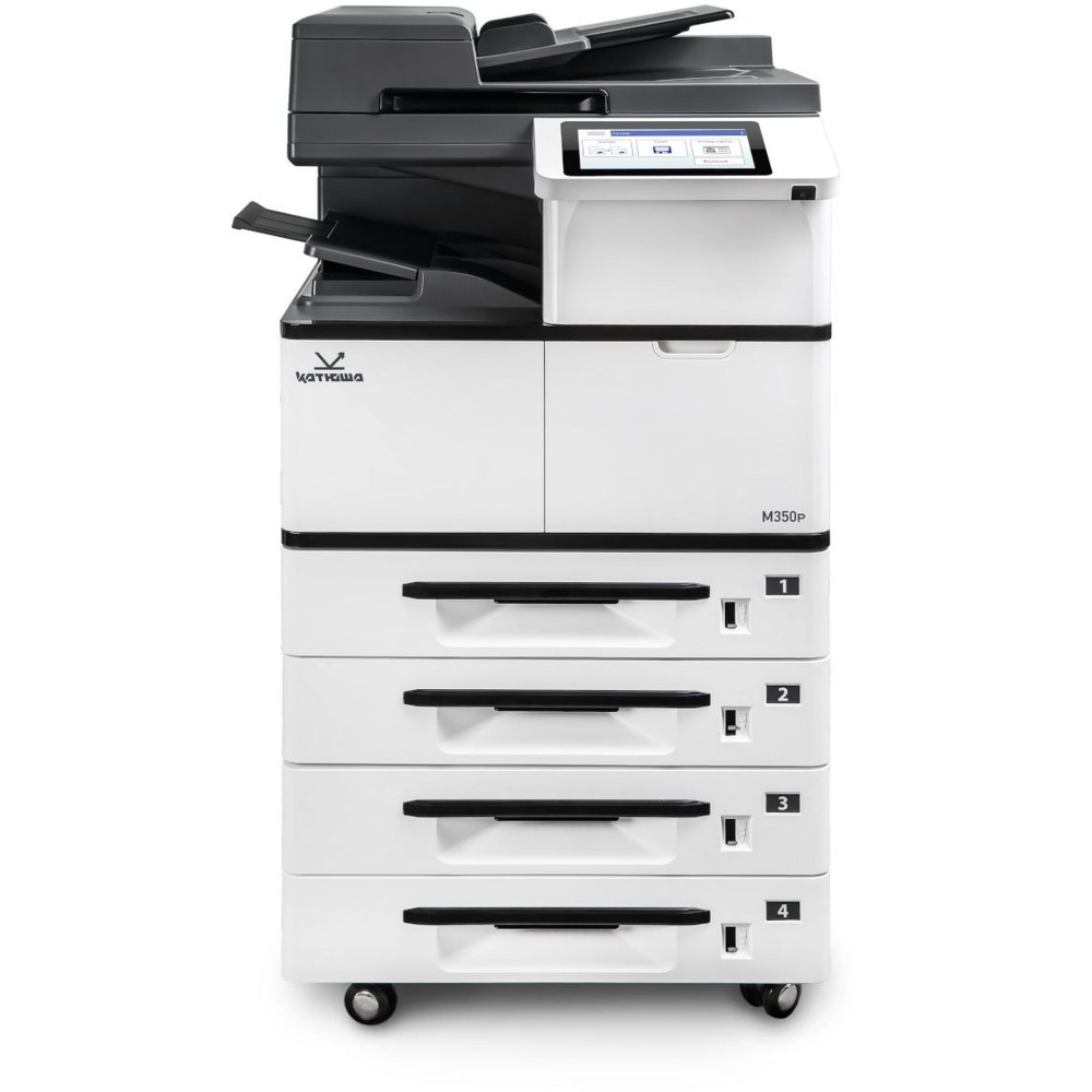 Технические характеристики МФУ Катюша M350p принтер/копир/сканер, А3 формат, монохромный, 50 А4/мин, 1200 dpi. Сканер цвет/чб. CPU 1200 МГц, 4 ГБ RAM, Ethernet, USB, USB-host, 8" панель. Тонер в комплекте 10 000 отп. Российская сборка Katusha IT