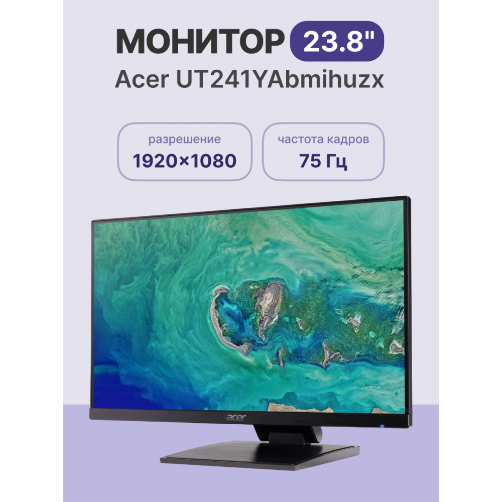 Монитор/ ACER UT241YAbmihuzx 23,8'', ZeroFrame, Black, 10 point MultiTouch, 16:9, IPS, 1920x1080, 1 / 4ms, 250cd, 75Hz, 1xHDMI(1.4) + 1xType-C(90W) + Audio out + USB3.2x3+USB-B(2up 3down), Speakers 2Wx2, sync Free Sync, H.Adj. 125 Acer