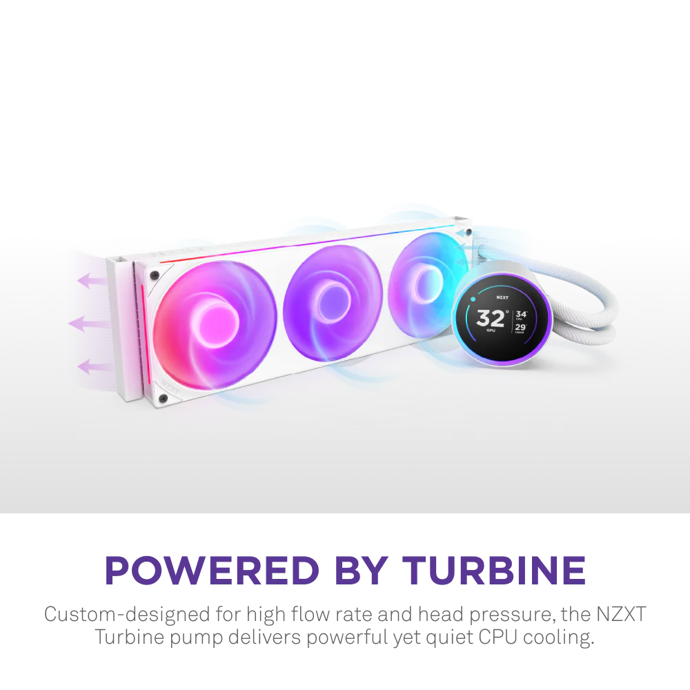 Чёрный цвет корпуса и яркая RGB-подсветка делают Kraken Elite 420 RGB заметным элементом вашей сборки. Радиатор толщиной 27 мм позволяет легко установить кулер в большинство корпусов формата Midi-Tower и Full-Tower.