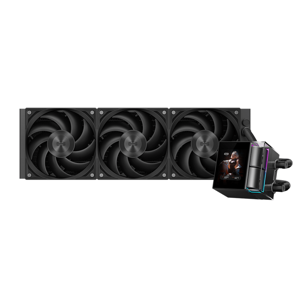 Охлаждение рассчитано на тепловую нагрузку до 310 Вт, что делает её отличным выбором для топовых CPU. Радиатор формата 360 мм и три 120-мм вентилятора с воздушным потоком до 90.56 CFM обеспечивают быстрое и стабильное охлаждение даже при экстремальных нагрузках.