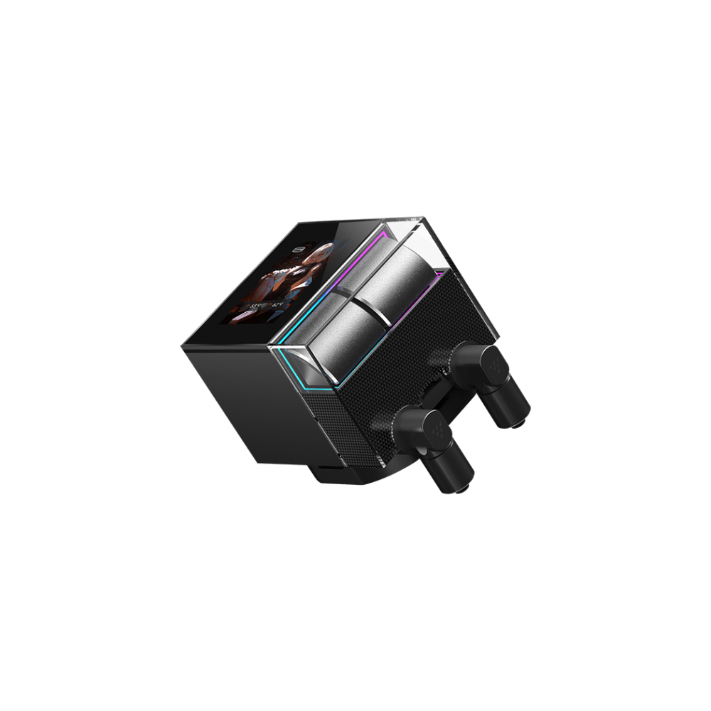 Яркая адресуемая подсветка вентилятора и насоса добавляет эффектный визуальный акцент. Интегрированный дисплей на водоблоке позволяет отображать параметры системы, такие как температура, обороты и логотип, придавая сборке индивидуальность и функциональность.