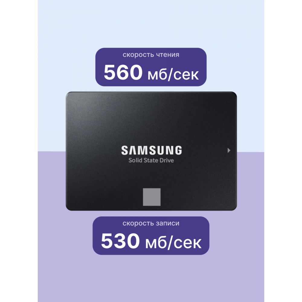 Технические характеристики Твердотельные накопители/ Samsung SSD 870 EVO, 1000GB, 2.5" 7mm, SATA3, 3-bit MLC, R/W 560/530MB/s, IOPs 98 000/88 000, DRAM buffer 1024MB, TBW 600, DWPD 0.33 (12 мес.) Samsung Electronics