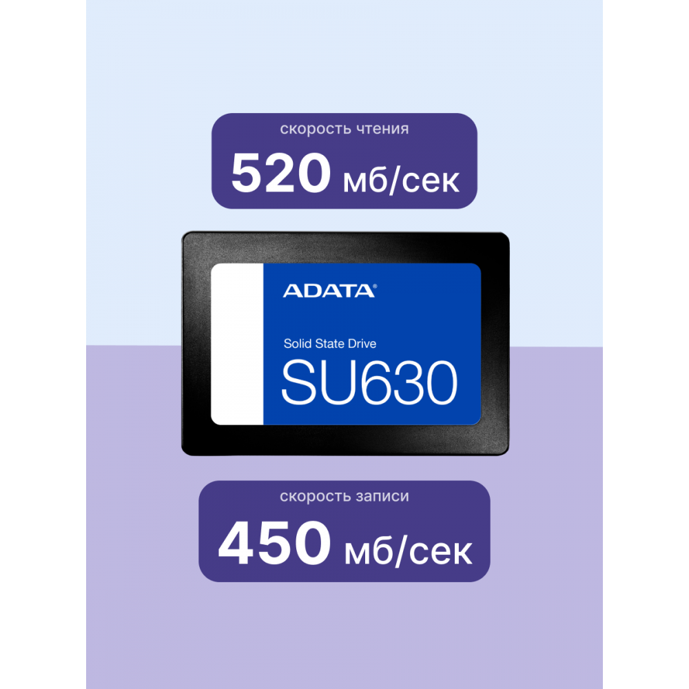 Собравшись заменить жесткий диск на твердотельный накопитель, не ищите лучшего, чем SU630 от ADATA. В основе твердотельного накопителя - невероятно эффективная и производительная флэш-память 3D QLC NAND. Кроме того, он оснащен великолепными технологиями LDPC ECC.