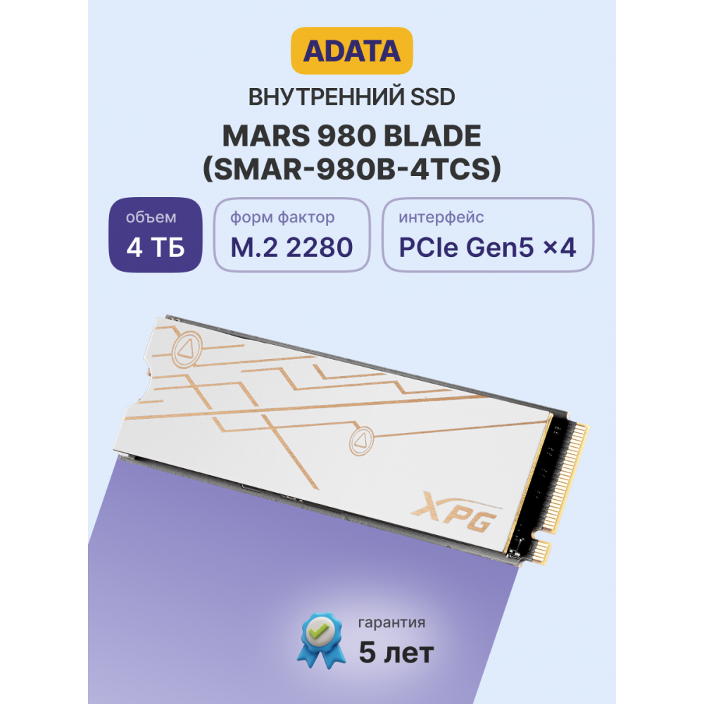 Внутренний SSD-диск ADATA SSD XPG MARS 980 BLADE представляет собой высокопроизводительное хранилище данных, предназначенное для использования в современных компьютерах и ноутбуках. Этот диск использует интерфейс PCIe 5.0 x4 и технологию 3D NAND, что обеспечивает высокую скорость передачи данных и надежность.