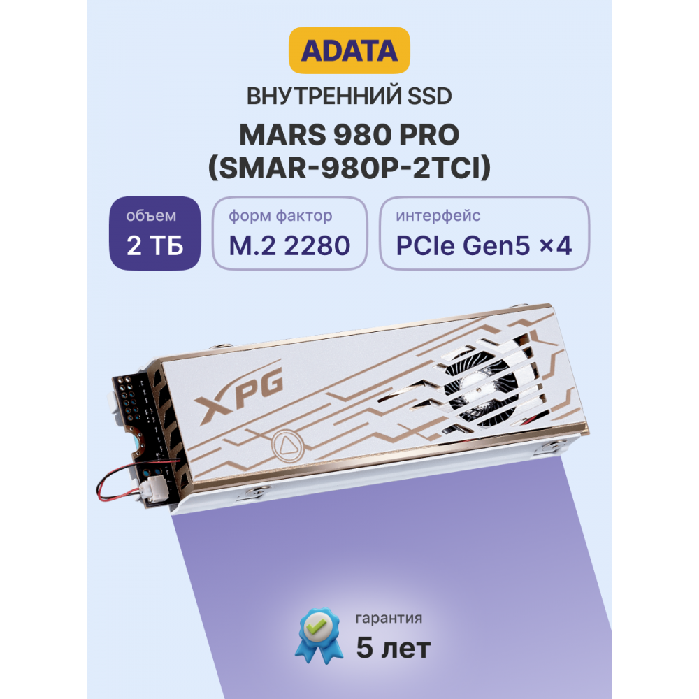 ADATA XPG MARS 980 PRO – это высокопроизводительный SSD формата M.2, созданный для геймеров, энтузиастов и профессионалов, требующих максимальной скорости и надежности. Благодаря интерфейсу PCIe 5.0 x4 и поддержке NVMe этот накопитель обеспечивает рекордную производительность, что делает его идеальным выбором для мощных ПК, рабочих станций и игровых систем. Встроенный радиатор эффективно отводит тепло, поддерживая стабильную работу даже при интенсивных нагрузках.