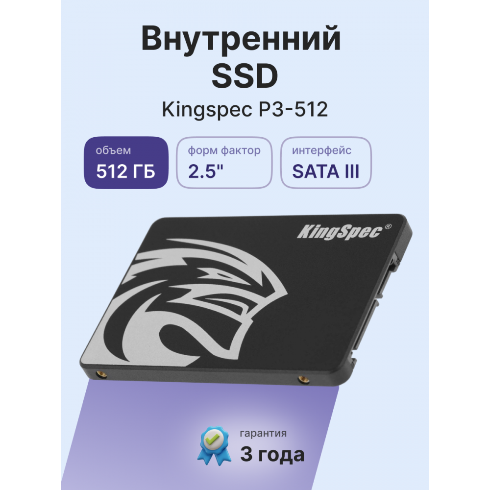 Твердотельный накопитель/ Kingspec SSD P3-512, 512GB, 2.5" 7mm, SATA3, R/W 570/540MB/s, IOPs н.д./н.д., TBW 240, DWPD 0.4 (3 года) SHENZHEN KINGSPEC ELECTRONICS TECHNOLOGY CO LTD