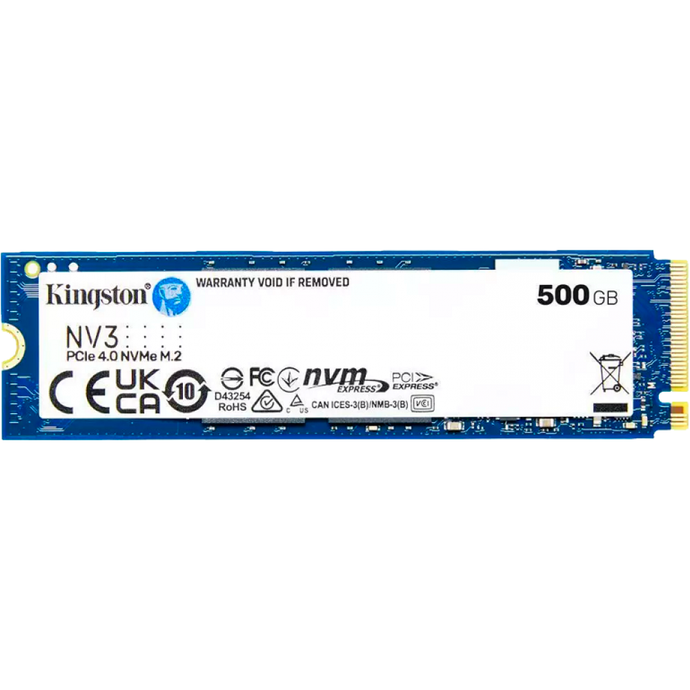 Твердотельный накопитель/ Kingston SSD NV3, 500GB, M.2(22x80mm), NVMe, PCIe 4.0 x4, 3D TLC, R/W 5000/3000MB/s, TBW 160, DWPD 0.2 (60 мес) Kingston