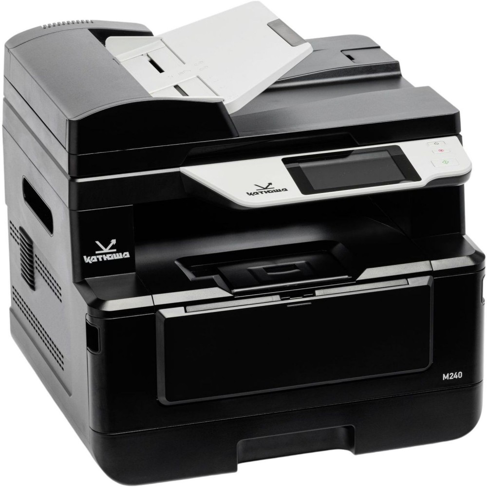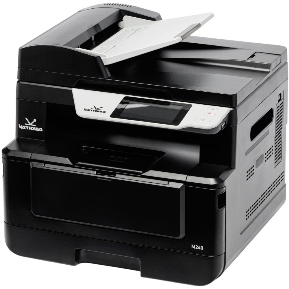 В РЕЕСТРЕ МПТ; Произведено в России, российские материнские платы! МФУ Катюша М240рm (А4, МФУ лазерный C/P/S(цв)/F(опция), Ч/Б, 40 стр/мин А4, дуплекс 20 стр/мин, макс. разрешение печати 1200х1200 dpi; процессор 1200 МГц, оперативная память 4 ГБ RAM (4 ядра), лоток подачи 250 листов (80 г/м2), 300 листов (60 г/м2), обходной лоток до 10 листов (80 г/м2), 20 листов (60 г/м2), выходной лоток 150 листов; Диапазон поддерживаемых плотностей носителя 60‐200 г/м2; DADF на 90 листов, скан Односторонний до 37 стр/мин, Двусторонний до 74 стр/мин, разрешения сканирования до 600 x 600 dpi (оптическое), до 1200 х 1200 dpi (интерполяция, с помощью утилиты), назначение сканирования SМB / FTP / CIFS / E‐mail / утилита Katusha scan tool; интерфейсы USB2.0 х 2 (USB Host), USB B, Ethernet (10/100/1000 MB) , Wi‐Fi (802.11 b/g/n) (опция), Факс (опция), Карман для установки SSD M2, Возможность установки считывателя карт СК 223; языки описания страниц GDI / PCL6 /PS3 (эмуляция); поддерживаемые ОС: Win, Win Server, Linux, Mac OS, Unix, Astra Linux, Ред ОС, Альт 8СП, ЕМИАС ОС; панель управления 4,3 (4,25) дюйма (10,8 см) полноцветный сенсорный дисплей+ блок кнопочной клавиатуры (3 клавиши); Нагрузка: 4500 стр/мес (рек)/100 000 стр/мес (макс); Тонер в комплекте на 3000 отп; 3 года гарантии!