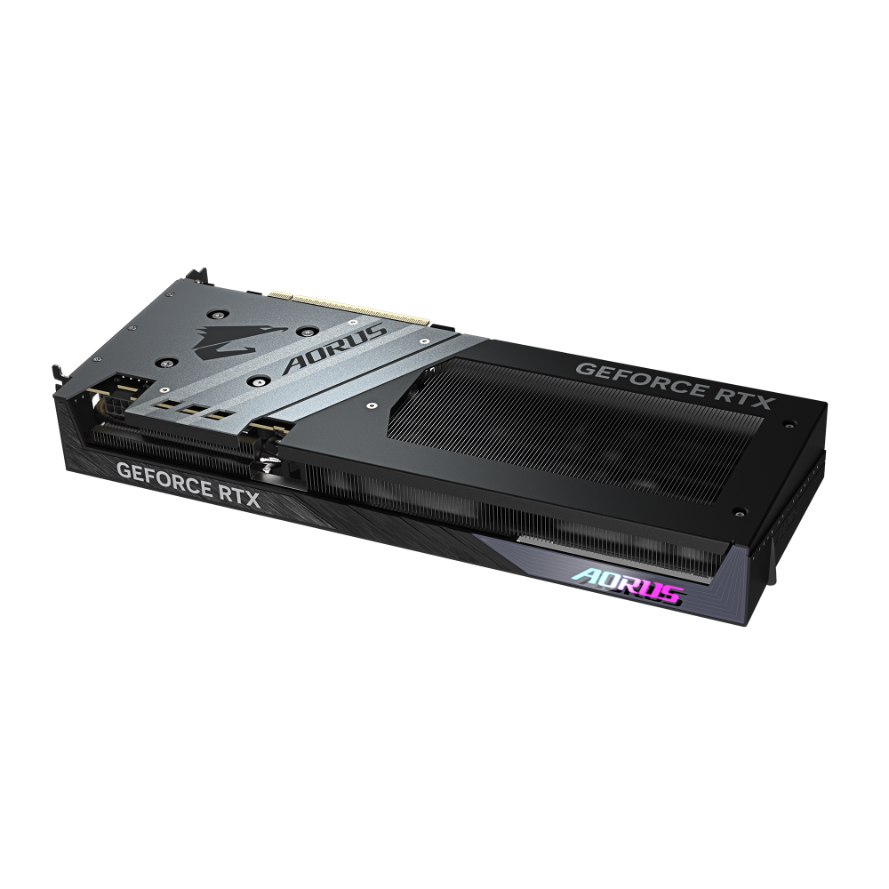 Видеокарта GIGABYTE GV-N5060AORUS E-8GD представляет собой современное графическое решение на базе архитектуры NVIDIA Blackwell. Модель относится к линейке AORUS и отличается элегантным дизайном с акцентом на эффективность и производительность. В дизайне используется оптический эффект послеобраза для передачи ощущения экстремальной скорости. Сходящиеся линии на передней панели видеокарты усиливают ощущение стремительного движения, а матовая текстура поверхности добавляет динамического контраста.
