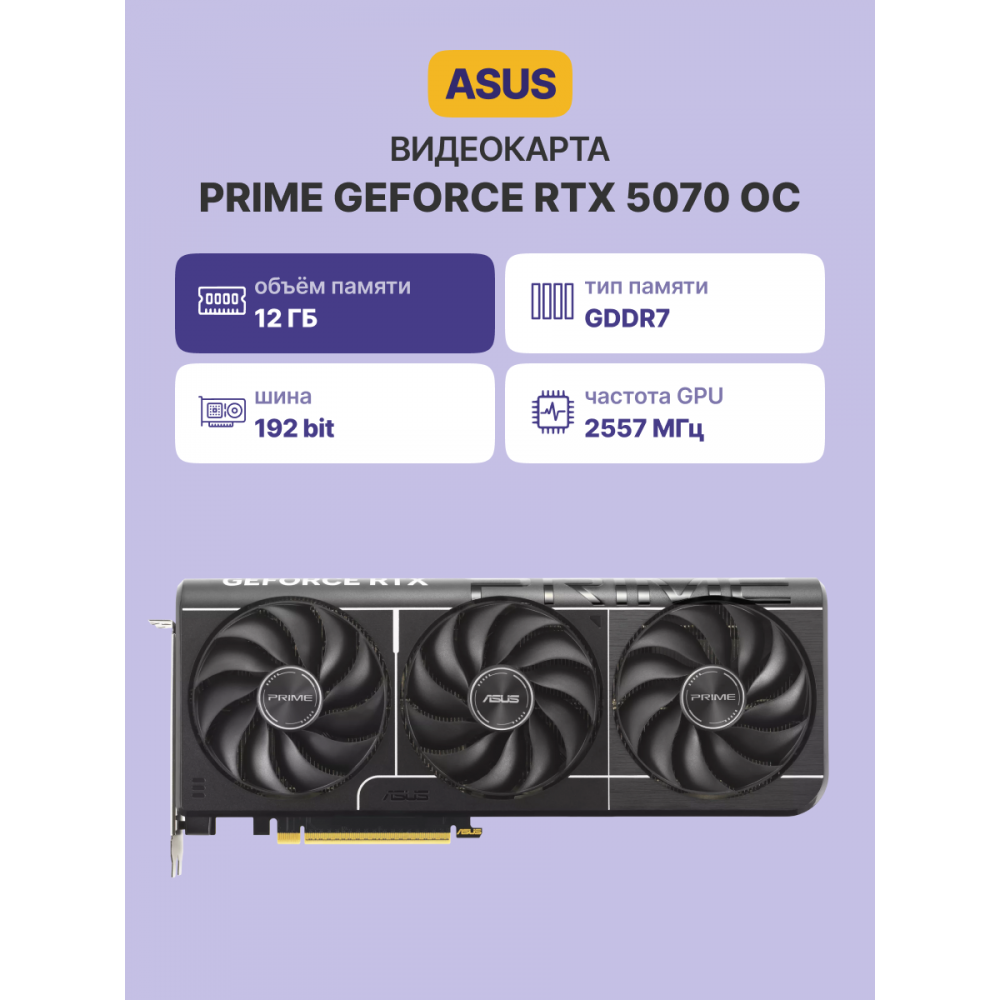 Видеокарта ASUS PRIME-RTX5070-O12G – это сочетание производительности, надежности и современных технологий, созданное для геймеров и создателей контента. Она обеспечивает впечатляющую графику, плавный игровой процесс и высокую энергоэффективность, что делает ее идеальным выбором для самых требовательных пользователей.